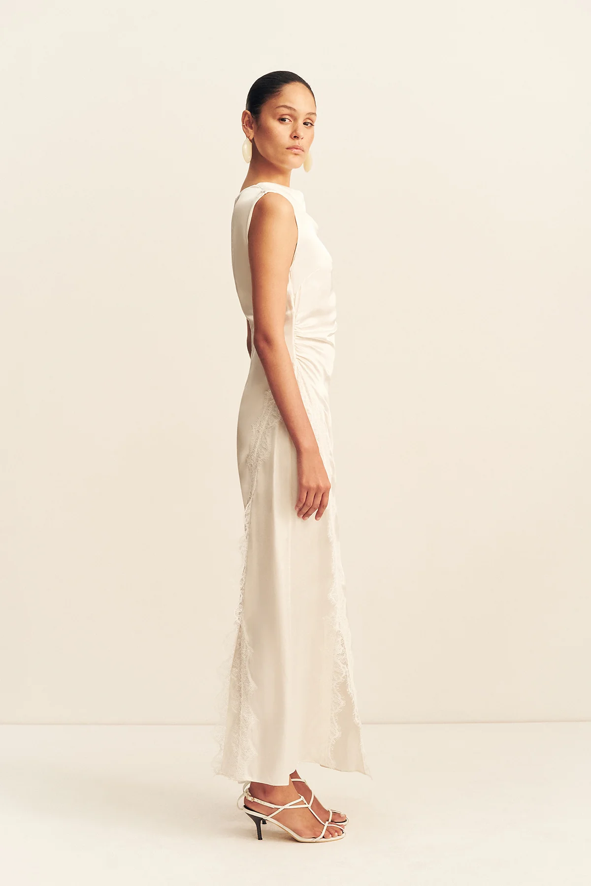 Cowl neck maxi dress with lace detailing in ivory in a LENZING â„¢ ECOVERO â„¢ Viscose with a luxurious matte finish.