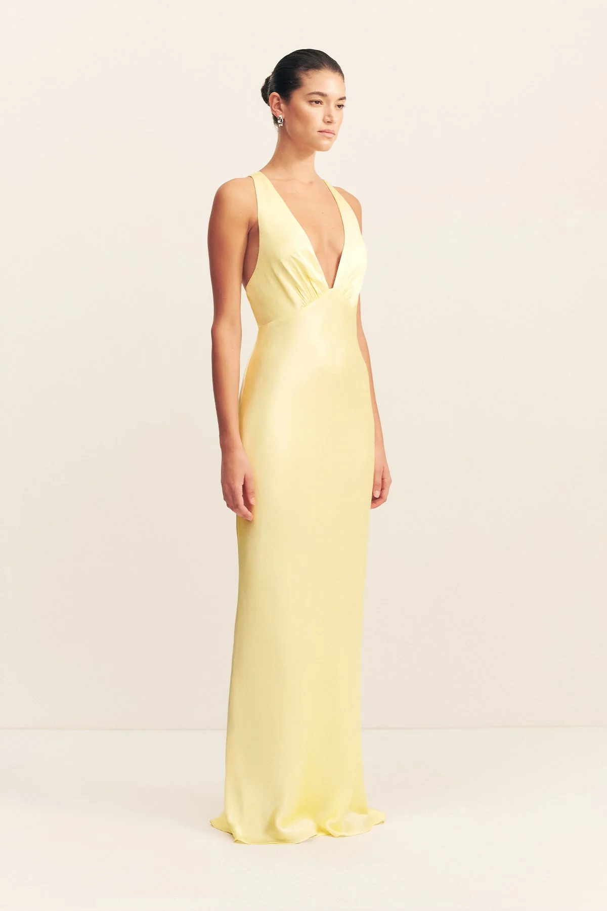 LA LUNE PLUNGED CROSS BACK MAXI DRESS - LEMON