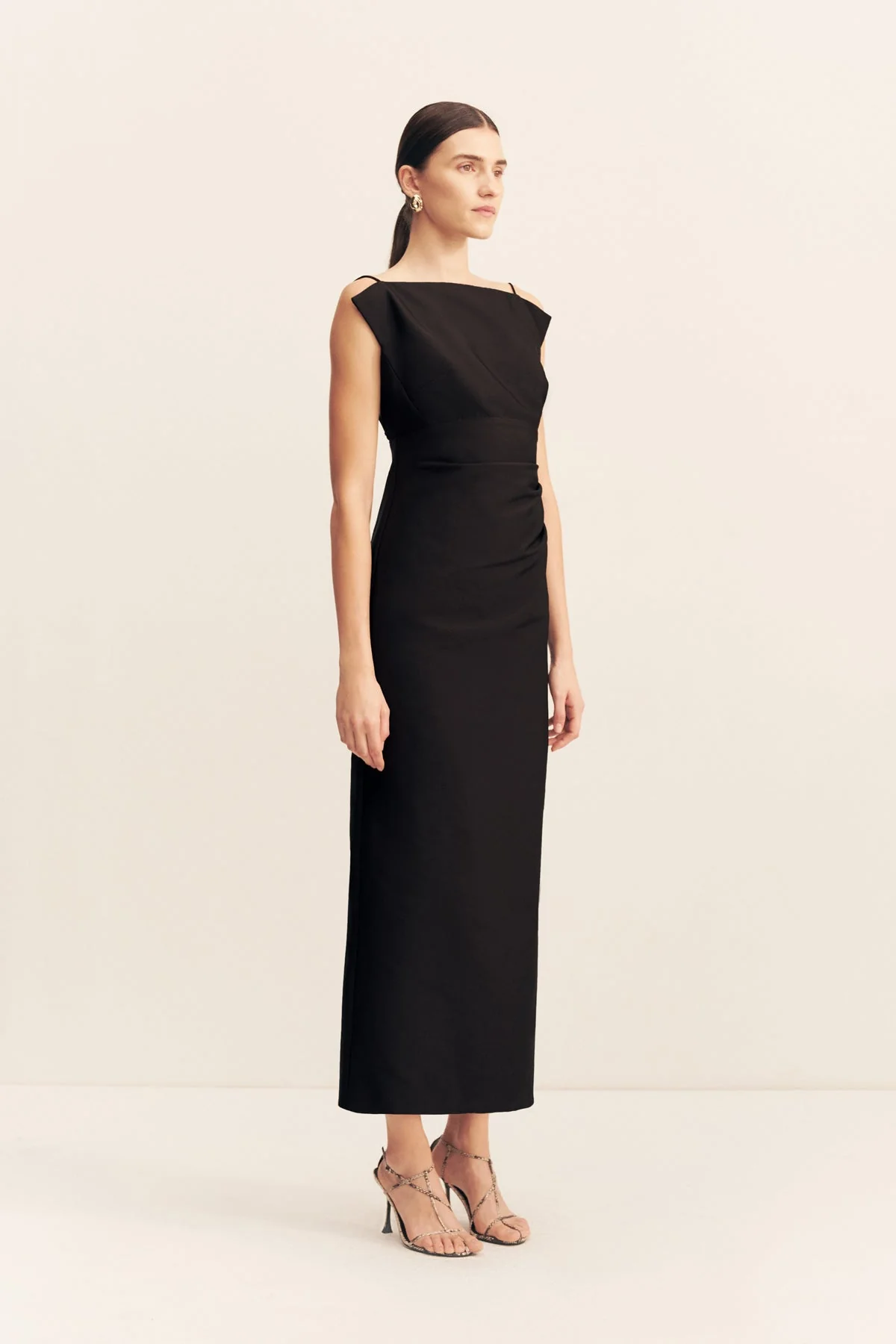 OTIS DRAPED HIGH NECK MIDI DRESS - BLACK